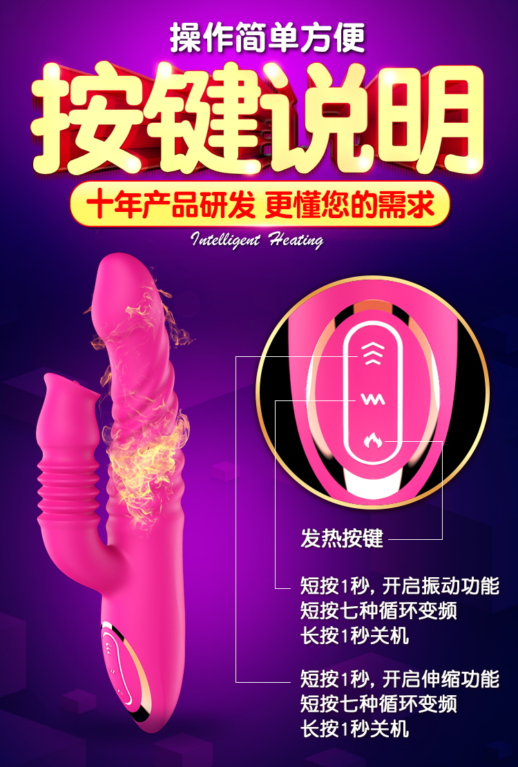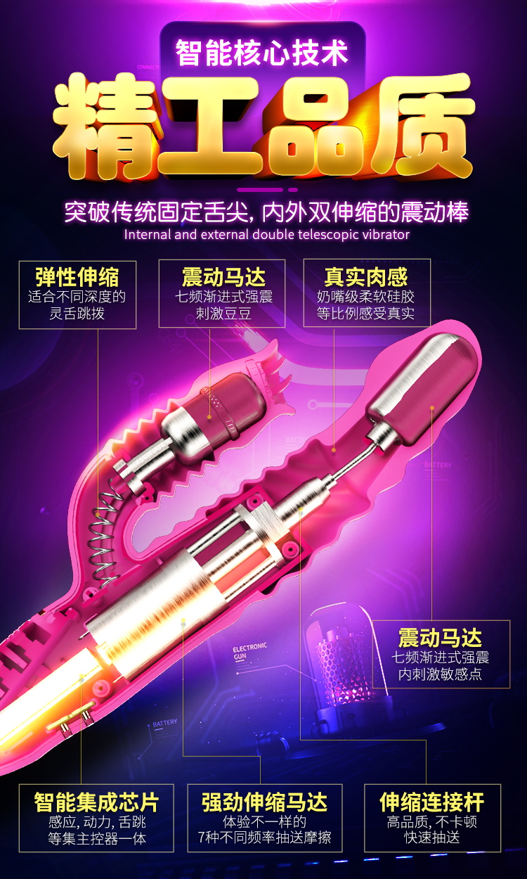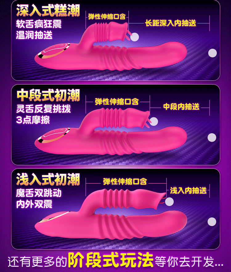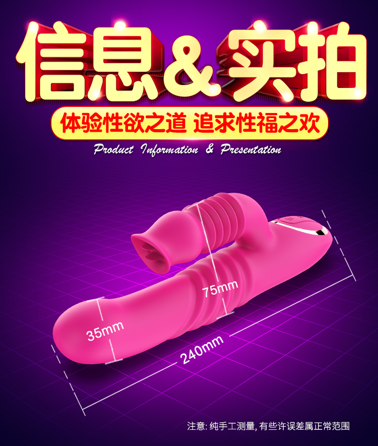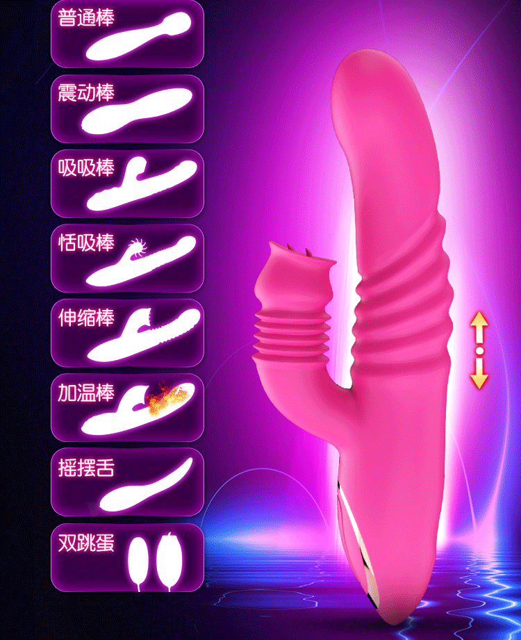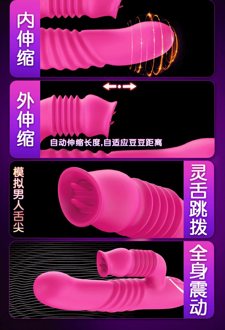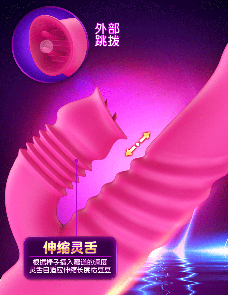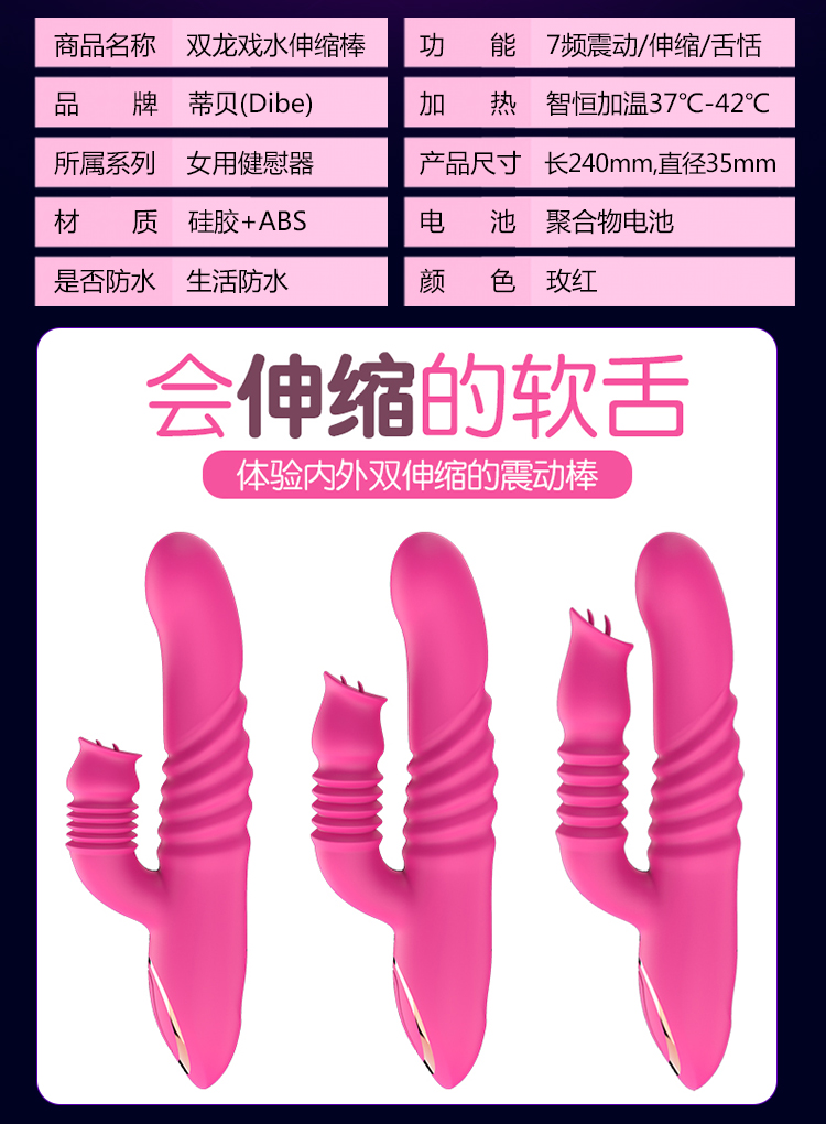 蒂贝 双龙戏水伸缩舌舔吮吸高潮伸缩棒成人用品 玫红色的描述